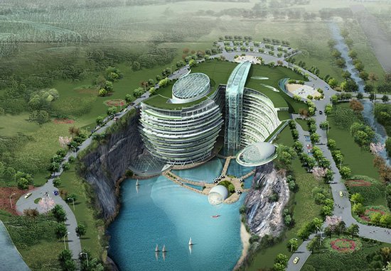 2018年11月10日在廢棄的礦坑中建酒店,聽起來是個不錯的創意。位於上海的「世茂深坑洲際酒店」,就建在一座80公尺深、周長近1公里的大坑裡。這間酒店的格局為地上2層,地平面以下16層,還有2層位於水面以下,也就是大家期待的水下景觀房。