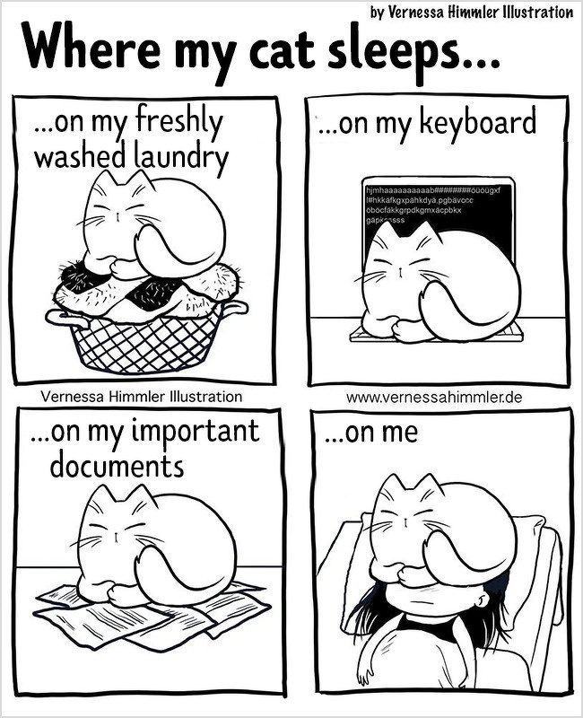 2018年11月10日要知道,貓咪是一種活在自我世界裡的動物,想要跟牠一起生活就要準備犧牲自己。下面這個插畫家Vernessa就是一名不折不扣的貓奴,她和愛貓的日常會讓沒養貓的人傻眼,但是同樣是貓奴的人則會嘴角上揚~你也想要養貓嗎?先看看這些日常,確認自己可不可以接受吧!