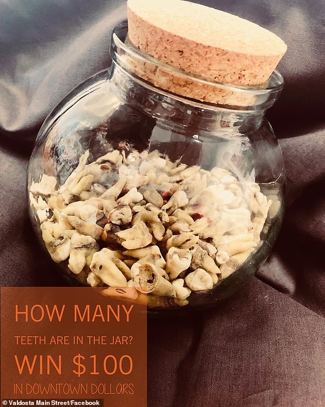 ▼喬治亞州瓦爾多斯塔社會歷史學會表示將會收藏在匡威大樓中找到的部分牙齒,剩下的牙齒會被丟掉。在牙齒被處理之前,當地也舉辦了活動,民眾如果能猜出瓶中裝有多少牙齒,就可以獲得100美金的獎金。