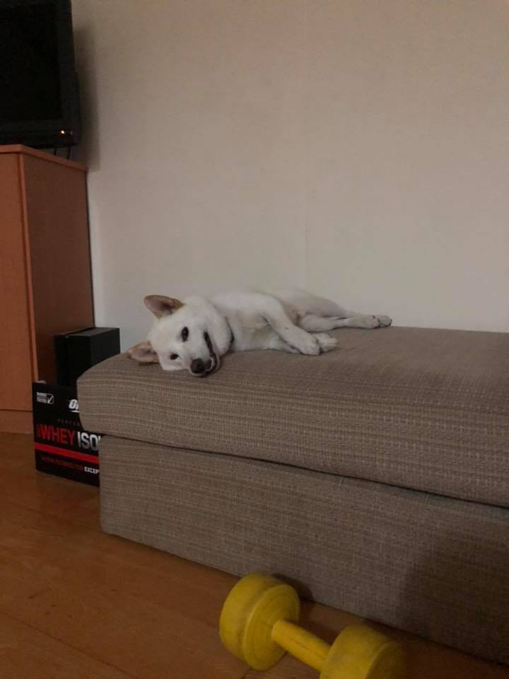 ▼這隻可愛的柴柴「蛋白」,非常喜歡一名經常送信來的郵差,因為郵差來到時都會順便陪牠玩,可說是看著蛋白長大的!