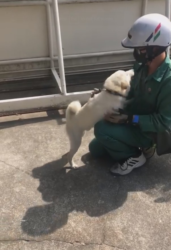 「聽到熟悉的引擎聲」好激動 小白柴秒撲郵差懷裡撒嬌:倫家好想泥啊~