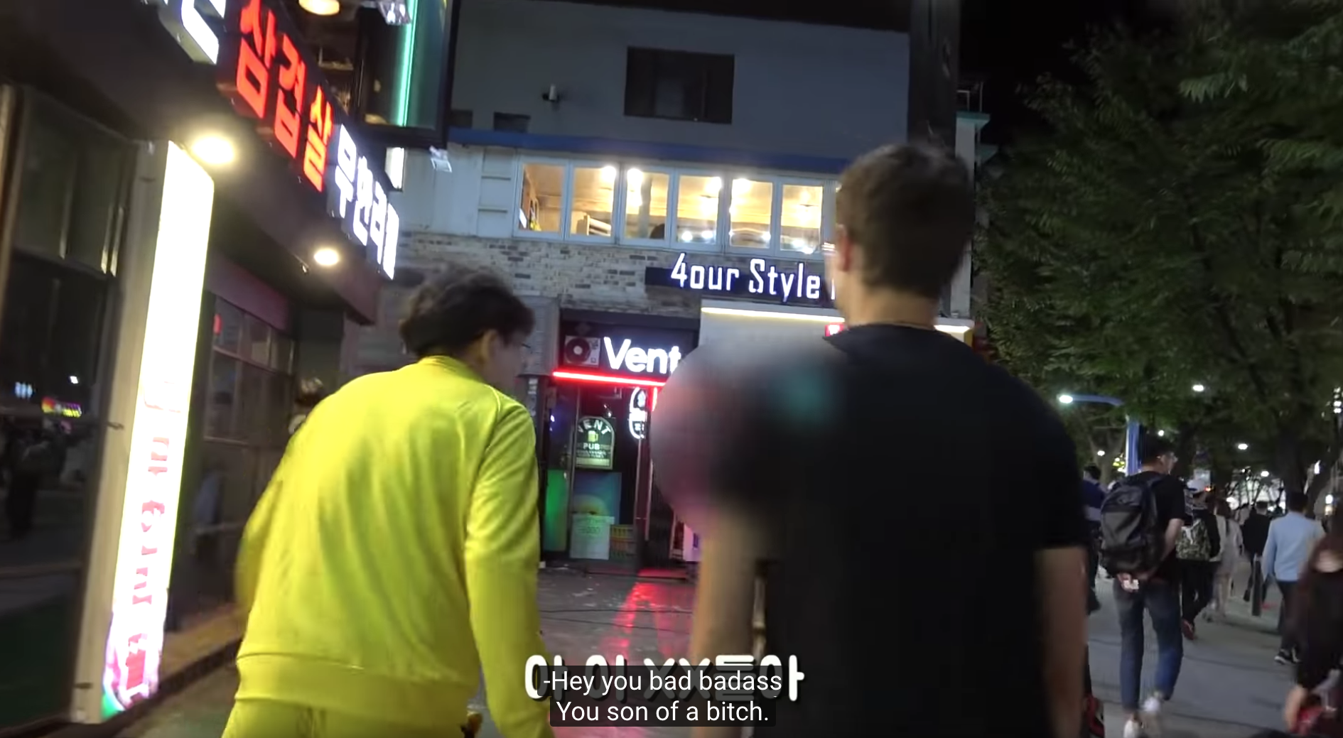 ▼看到外國人跟著走了,他就受不了直接阻止,還一路狂飆罵:「為什麼要做這種事?你知道這樣會影響外國人對韓國的印象嗎?」。