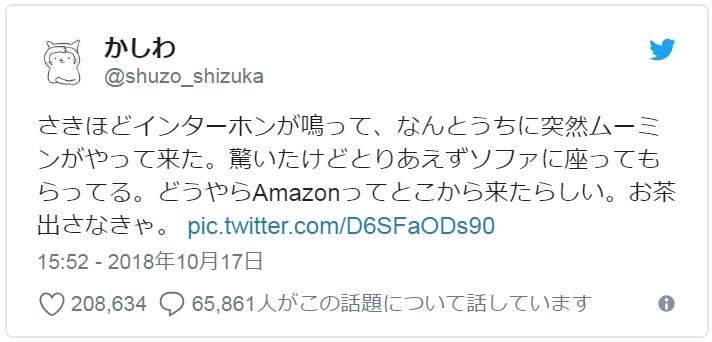 ▼「家裡的門鈴突然大響,開門後進來的竟然是嚕嚕米。雖然很驚訝,也只好請嚕嚕米先坐下。嚕嚕米好像來自Amazon,得給他倒杯茶才行。」