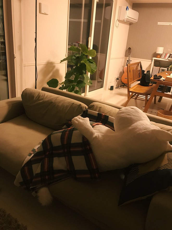 ▼「嚕嚕米說,因為是借住別人家,所以睡沙發好了。時間晚了該睡了,晚安。」