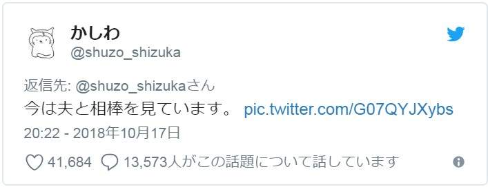 ▼「現在嚕嚕米跟我老公在看《相棒》。」