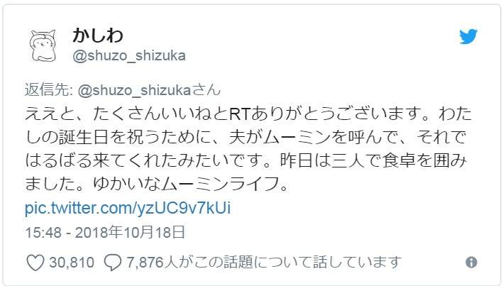 ▼原來這個特大號的嚕嚕米,是原po老公送給她的生日禮物。她沒想到嚕嚕米會這麼大,簡直大傻眼,忍不住拍照po到推特上,推文竟然被上萬人轉推。她還想把這個推特帳號變成以嚕嚕米為主角,說不定更受歡迎。