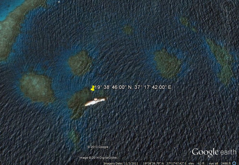 ▼1. 失事的印度船隻。(GPS定位座標:19° 38′ 46.00″ N, 37° 17′ 42.00″ E)