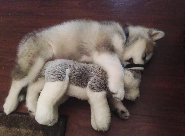 ▼分不清哪隻才是真的哈士奇。