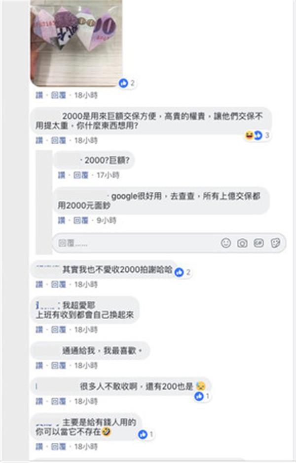 2018年11月30日在目前市面上流通的新台幣中,紫色的2000鈔票是面額最大的,也很少見,日前就有網友在臉書上抱怨自己拿了一張2000元去買東西,結果好多商家都不收,讓他非常苦惱,此話題也在網路上引起了熱烈討論,網友們更是揭露了2000元紙鈔的最實在用途。