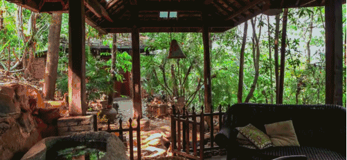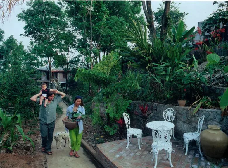 ▼2000年時,兩人結婚了。他們在湄公河邊安了家,取名叫「湄公山莊」。那裡曾是一片15畝的橡膠林,是當地人種下的。橡膠樹經濟效益很高,人們把原來的樹木砍倒,全都種上了橡膠樹。但沒人看到因為單一物種的比例失衡,雨林裡的生態平衡被打破,水分蒸發和地表徑流大大地提高,許多原始的物種都生長不下去了。