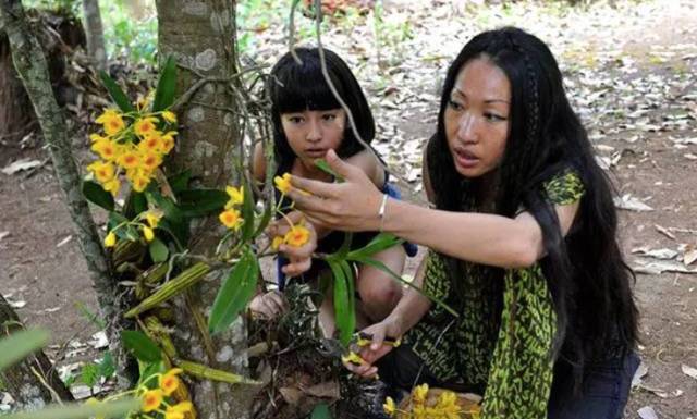 ▼李旻果認為最好的教育是言傳身教,夫妻兩人對自然的熱愛、呵護,影響著兩個小孩。她們也善待生靈,熱愛自然。她們和花對話,感知大樹的能量,能聽到落葉的聲音,在雨林中赤腳奔跑,她們對雨林的熱愛和依賴融入了骨子裡。