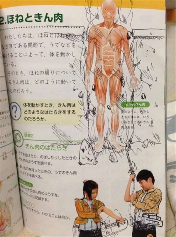 2018年11月22日求學時代無聊的時候,班上總是有一些神人能夠將課本內的插圖改得超歪樓的,而有日本網友在網路上分享了日本學生的課本塗鴉,不得不佩服他們的腦洞程度簡直是出類拔萃啊!以下就是一些他們在課本上的塗鴉,一起來看看他們畫了什麼吧!