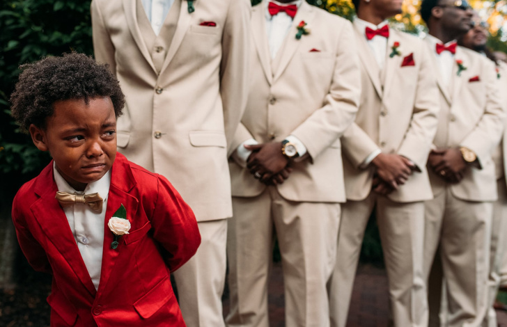 ▼20.小男孩看著媽媽嫁人,他感動得哭了。