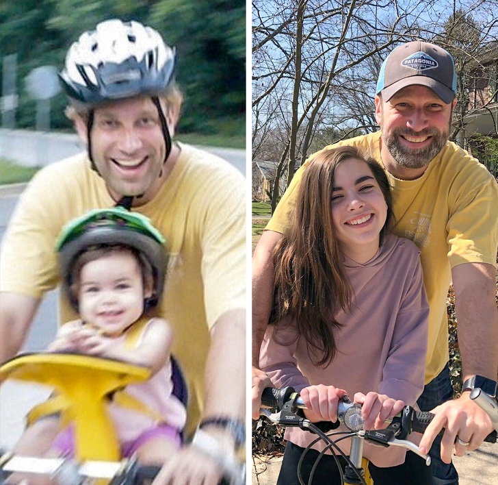 ▼17.「同樣的衣服、同樣的自行車、同樣的孩子、同樣的爸爸。」