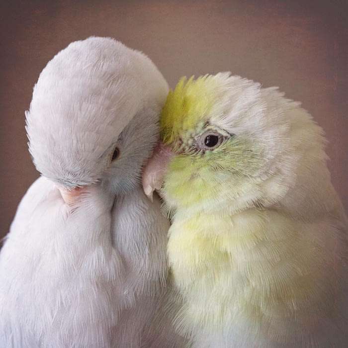 浪漫鸚鵡情侶寫真照萌死人! 兩隻「親嘴」畫面讓人心都暖了