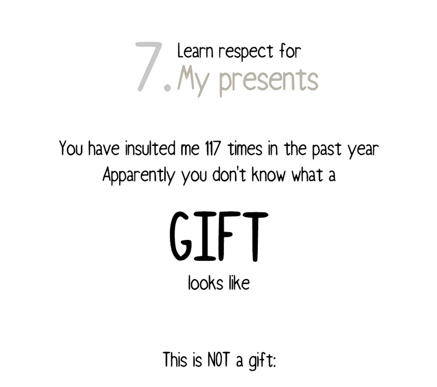 你總是問我要什麼禮物,很顯然你也並不明白我想要什麼禮物。包裝得很完美的玩具並不是我想要的,我要的是一隻新鮮的血淋淋的小鳥或者小魚,那吃起來簡直太爽了!