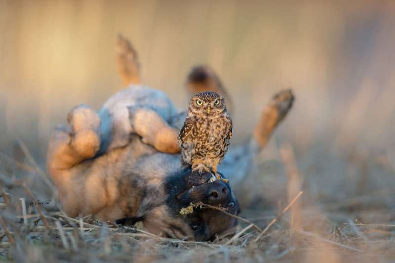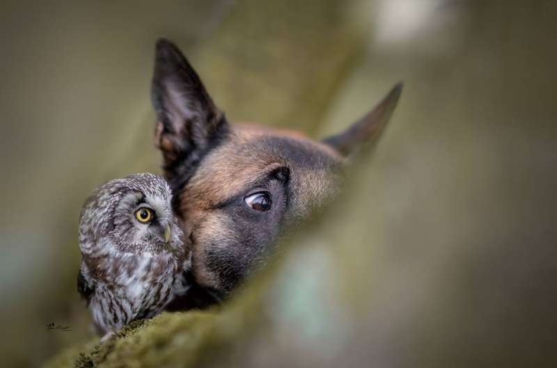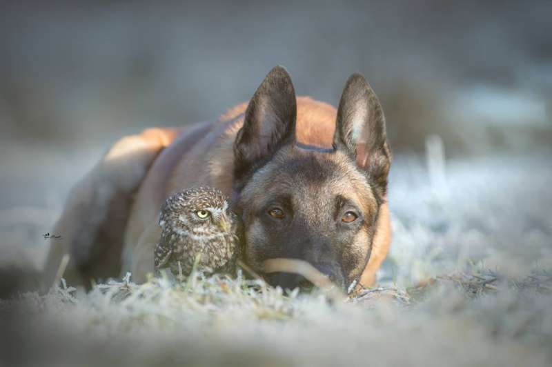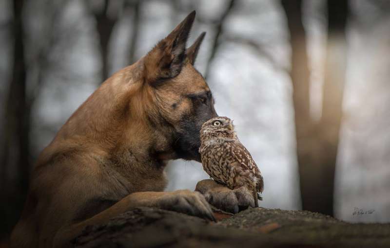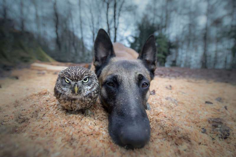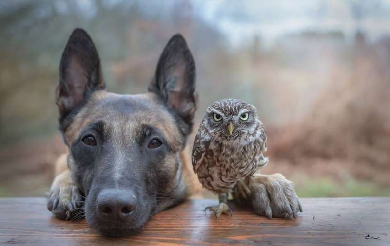 2018年11月26日一名德國師攝影師家中住了好多可愛的小動物,其中最有名的就是大狼犬Ingo和貓頭鷹Poldi,兩個人每天「黏緊緊」,不管做什麼事情,都要在一起,讓人懷疑是不是正在「談戀愛」啊!