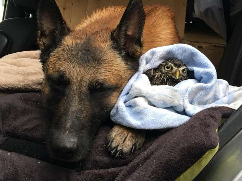 大狼犬被貓頭鷹收編「變專屬跟屁蟲」 凹嗚:我欲甲你攬牢牢~