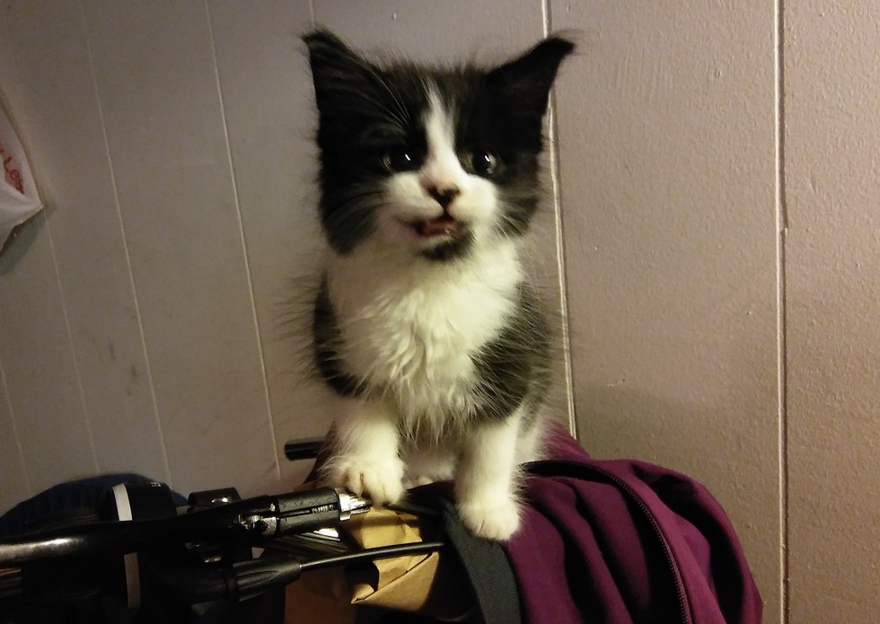 腳踏車爆胎改搭公車 結果她一下車「包裡就多了一隻小主子」