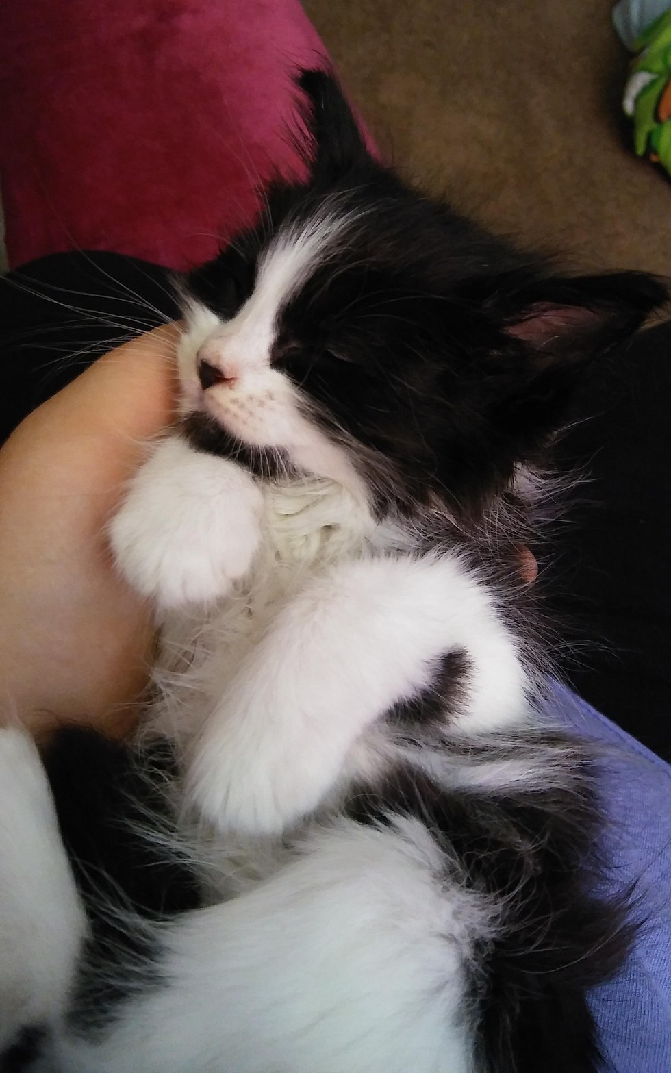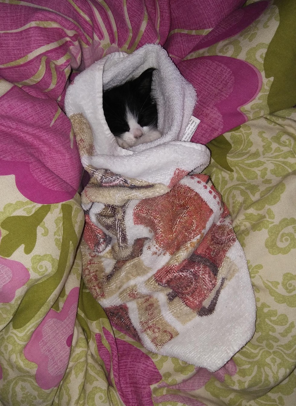 現在小貓被取名為Ivy,牠很黏人,總是跟在Kayla身後,想要討摸摸,還喜歡睡在媽媽的臂彎裡。媽媽沒空的話,牠就跑去和三花貓窩在一起。腳踏車爆胎卻遇到了這個小精靈,真是命運的安排啊~