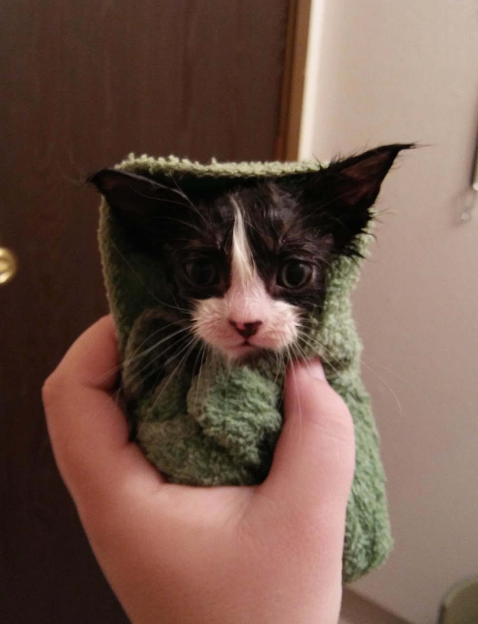 ▼Kayla本來就是愛貓人士,家中有一隻三花貓,看到那隻小貓後,她一下子就被迷倒,決定領養牠。