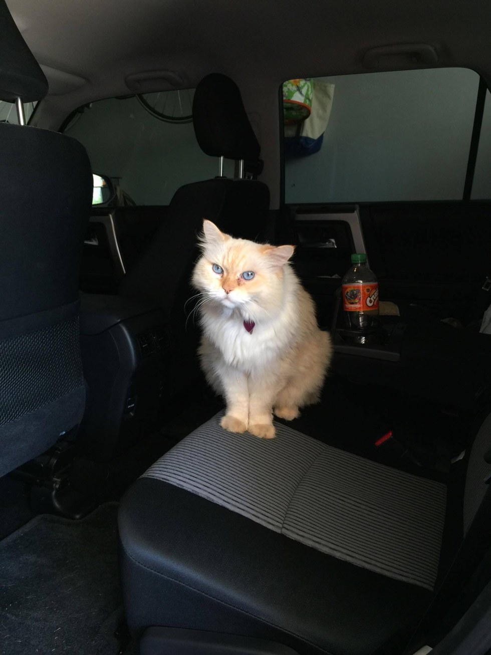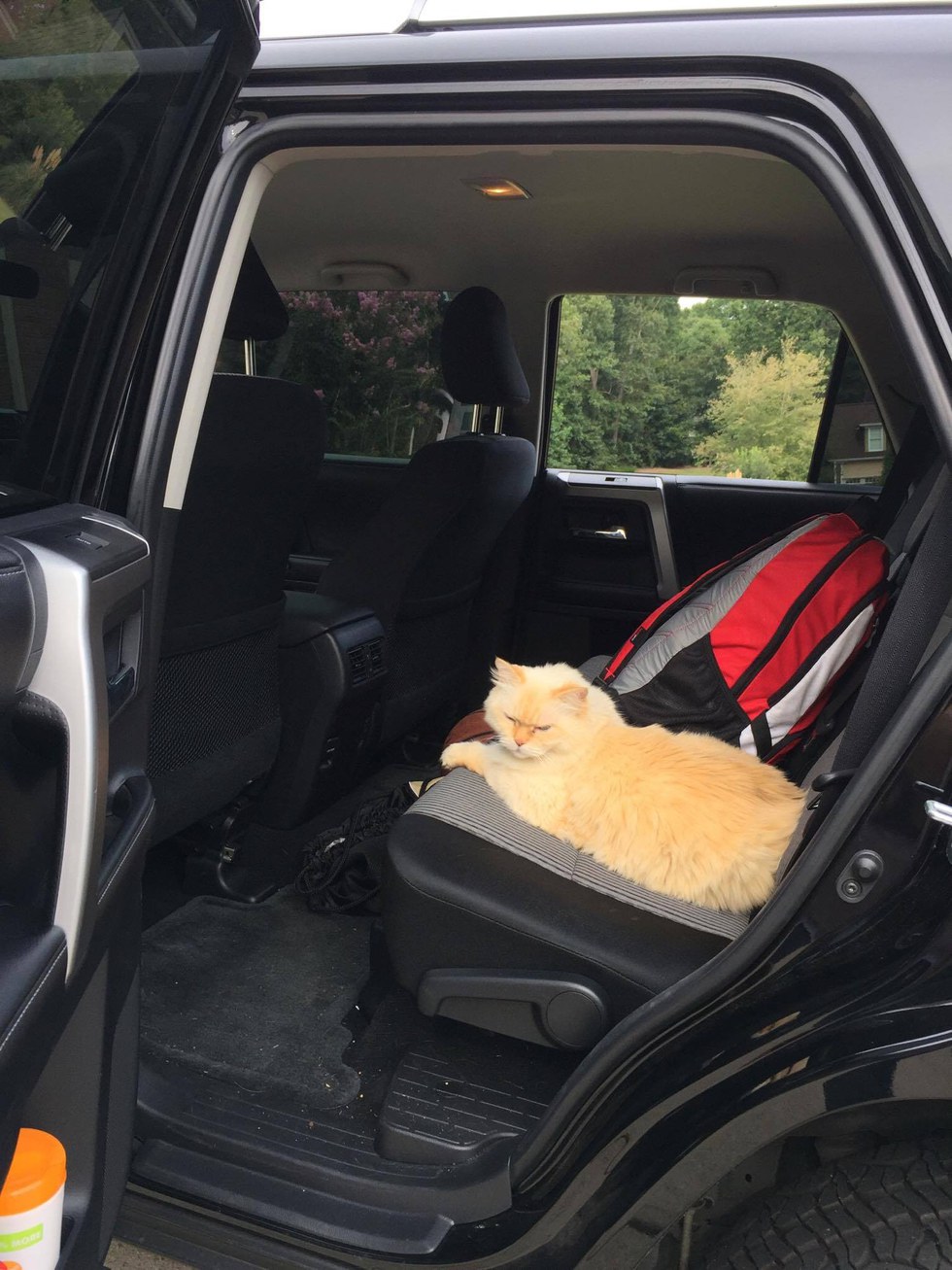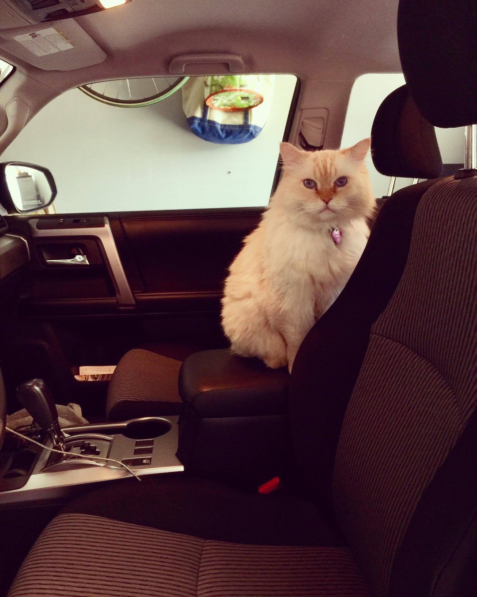 ▼勞拉說,辛巴最喜歡到她家的車庫,然後在她的座椅上小睡。偶爾牠也會攀上勞拉的肩膀,彷彿知道勞拉想要回味貓咪在身邊的感覺。