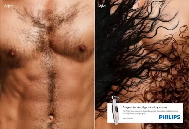 ▼飛利浦刮毛刀:把雜毛刮乾淨後,女人們自然願意用秀髮溫暖你的胸膛。