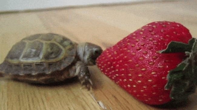 ▼烏龜吃草莓,這畫面我能看一整天。