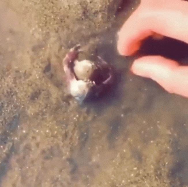 ▼這隻小蟹很勇敢,牠在努力保護夥伴。