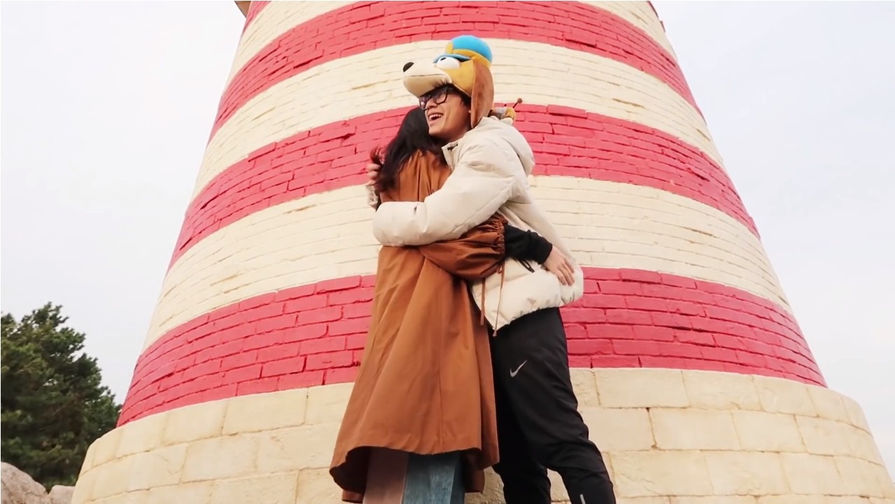 ▼似乎已經察覺男友意圖的阿福,還未聽到歌聲就已經癟嘴掉淚,激動的等著HowHow的演出。結果因為他實在太緊張,短短幾句歌詞中不斷走音、忘詞、Key太高上不去,樂園的遊客也不斷亂入鏡頭中,讓不久前還在哭的阿福也忍不住笑了!