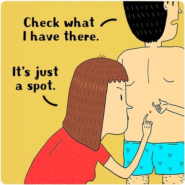 「幫我看看背上長了什麼。」「只是顆痘痘而已啦。」
