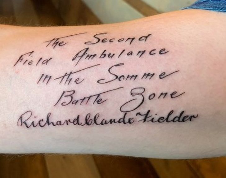 ▼「我爸在我4歲的時候離開了世界,我把他在軍用文件上的簽名刺到了身上。」