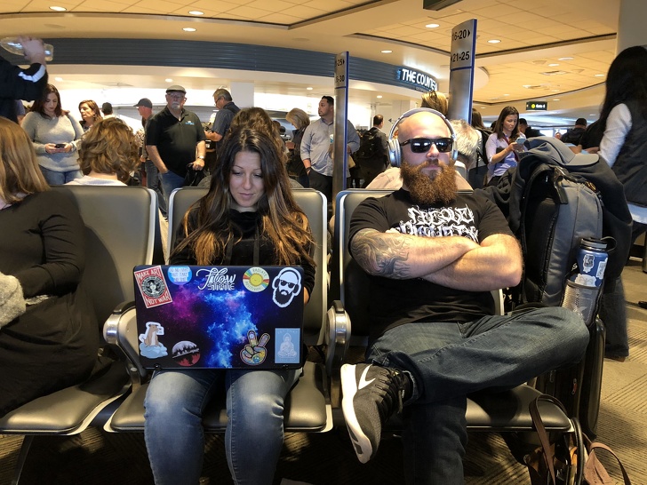 ▼旁邊那位鬍鬚男跟筆電上的貼子長得一模一樣!