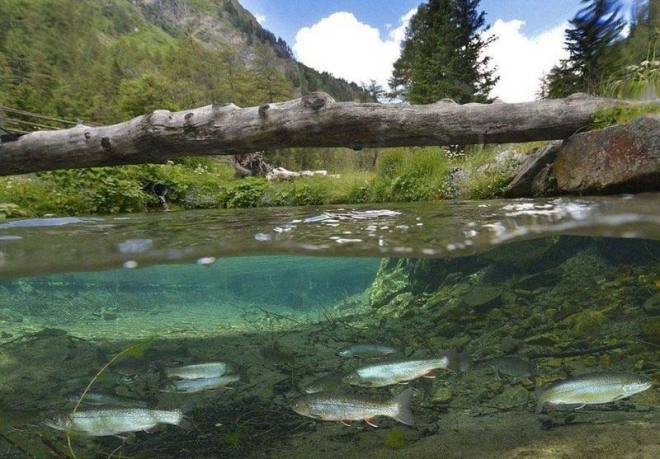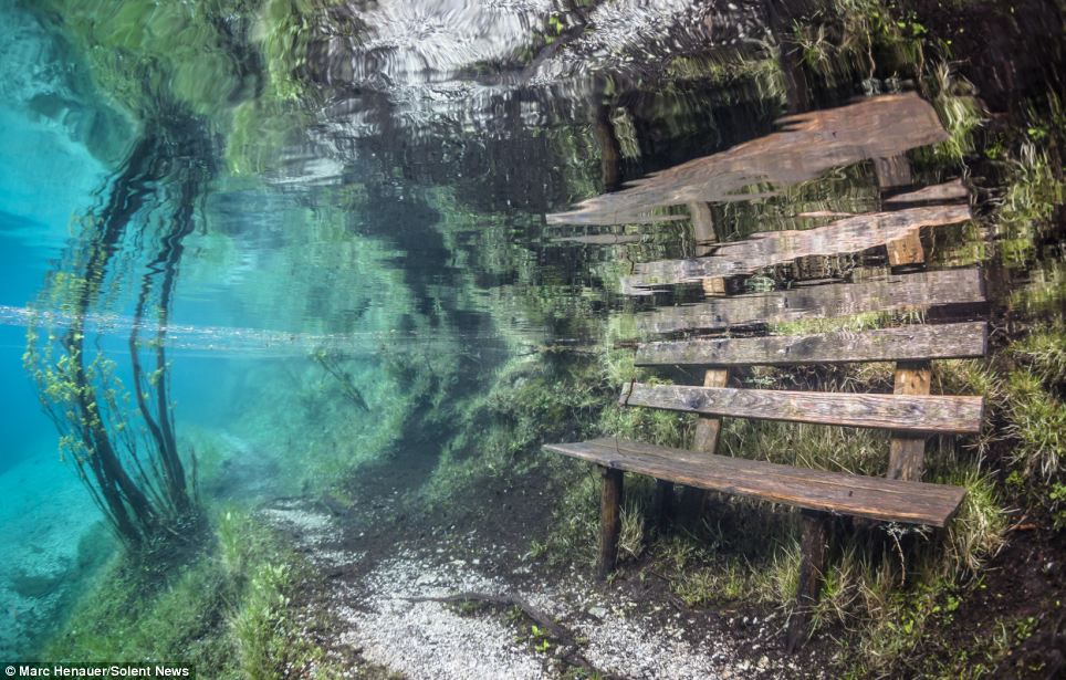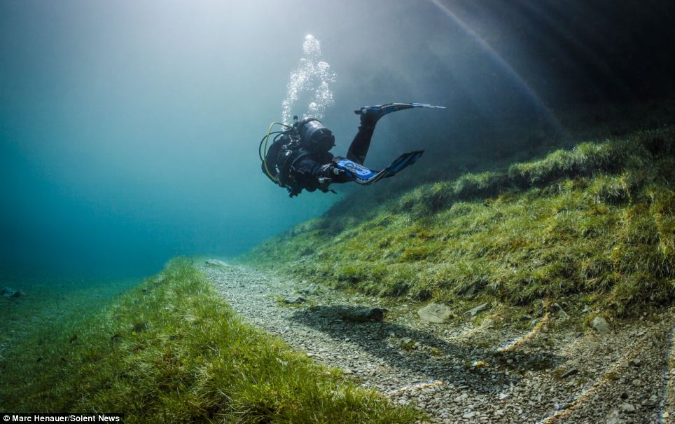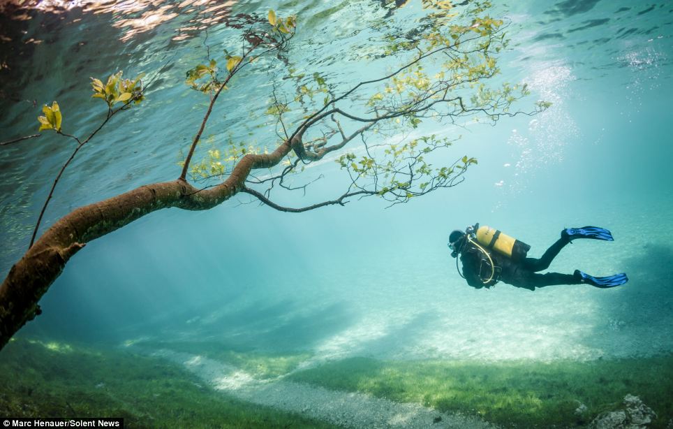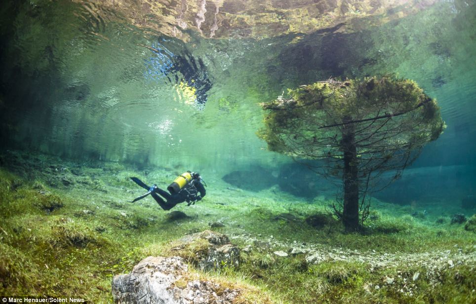 綠色鏡面湖泊每年只出現90天 潛下去拍到「失落的公園」成世界奇景