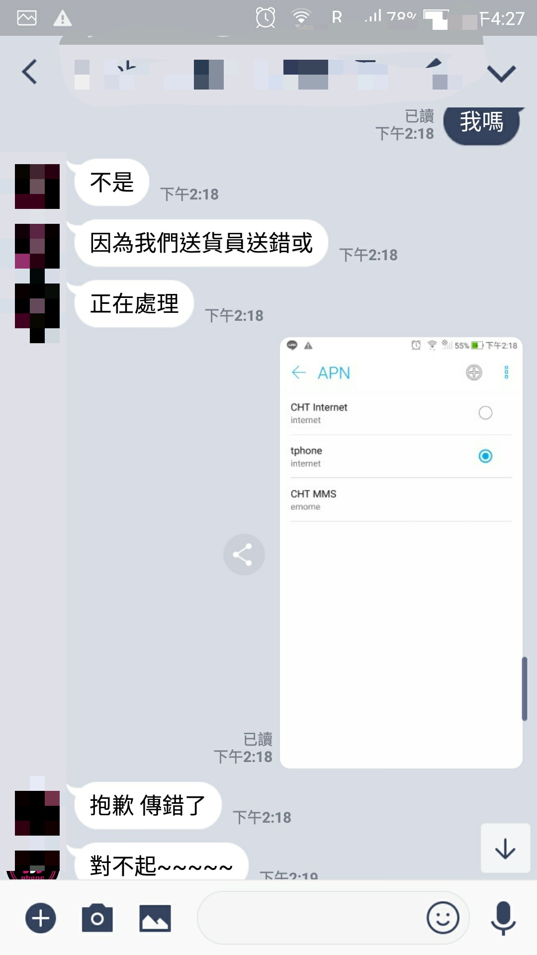 ▼沒想到這時客服突然傳訊,說:「遇到一個北七。」原po驚訝問:「我嗎??」客服連忙道歉:「抱歉,傳錯了。」還解釋說是傳錯訊息,因為送貨人員送錯貨,他正在處理。