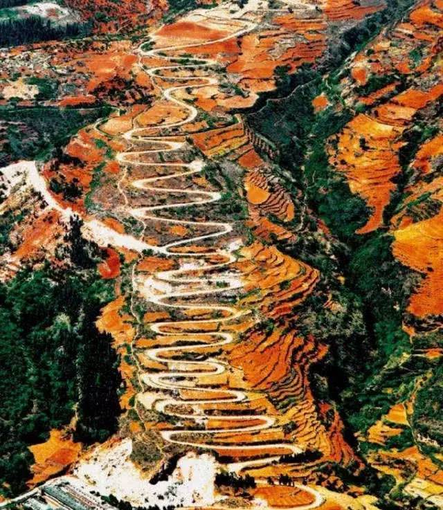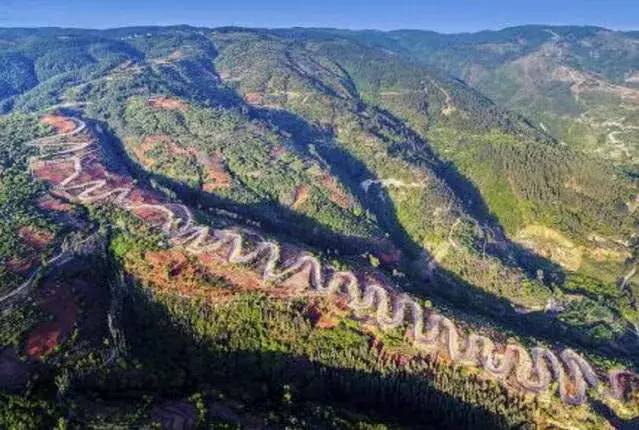▼宜良靖安哨公路是1995年時建造的,位於海拔1500公尺處的山上,空氣很稀薄,這也大大增加了行駛的難度。因為設計複雜,這段公路被命名為「世界公路史上的奇蹟」,也有人稱它為「天下第一彎」。