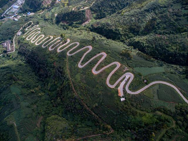 ▼這條公路全長7公里,連接著金星和景安濠兩個村莊,全名為「宜良靖安哨公路」。其中有一段非常崎嶇,足足有68個髮夾彎,有些髮夾彎中間距離僅有100公尺,非常考驗駕駛技術。
