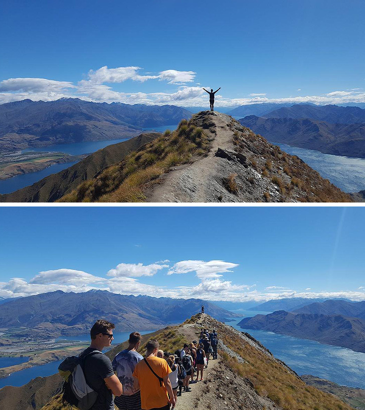如果不是看到對比照,完全想不到這些美照背後竟然是這麼普通的場景。這都有賴於攝影師的超高功力,讓我們見證了這麼有趣的「騙照」!