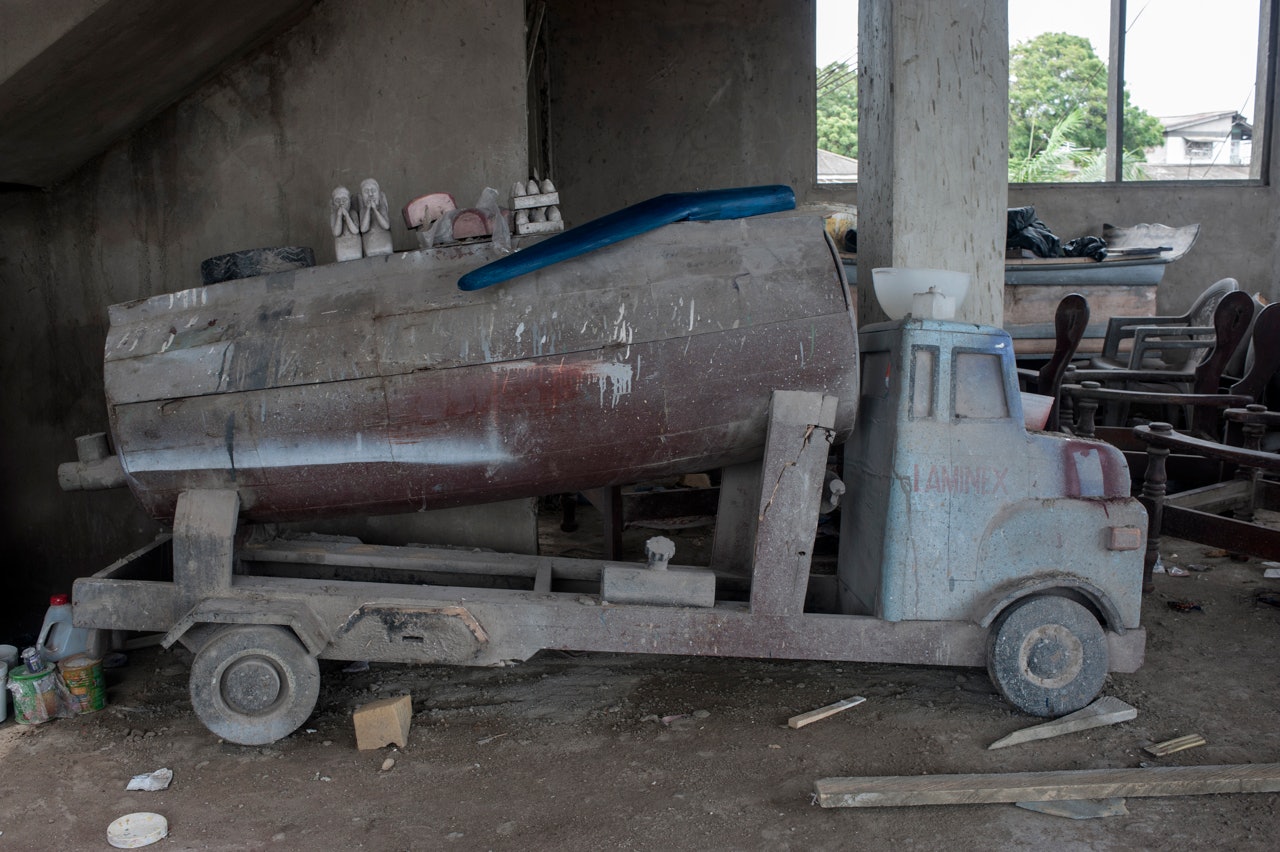 ▼貨車造型的棺木,連車輪這些細節都神還原。
