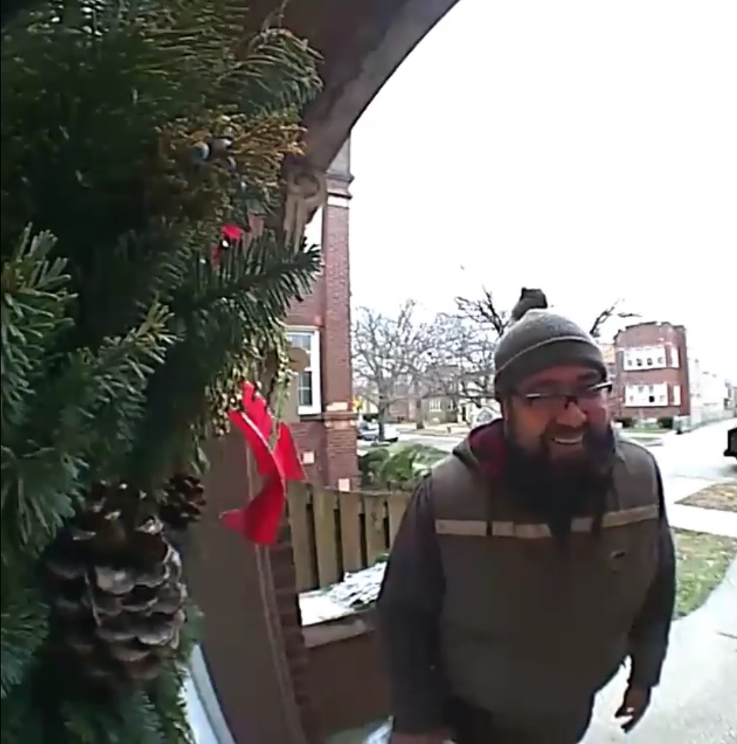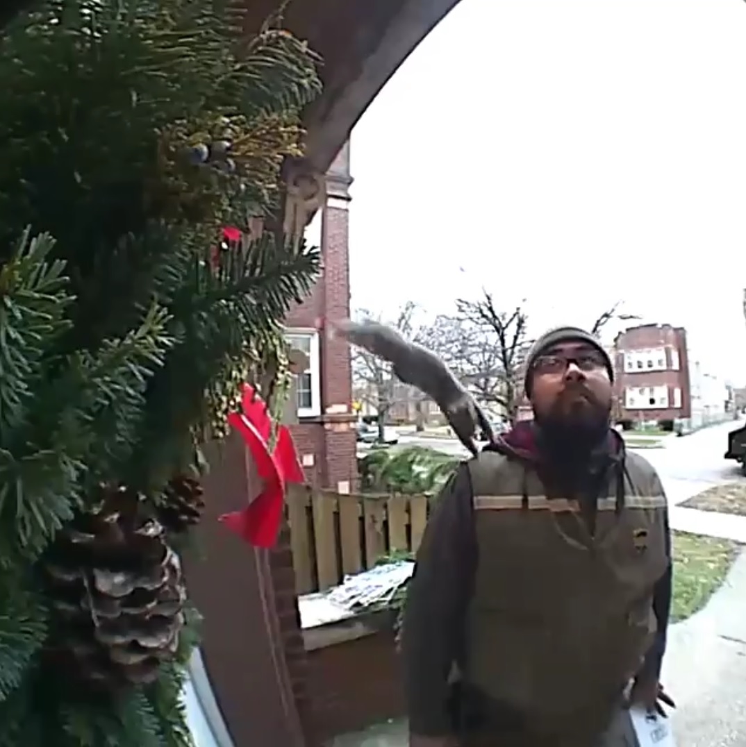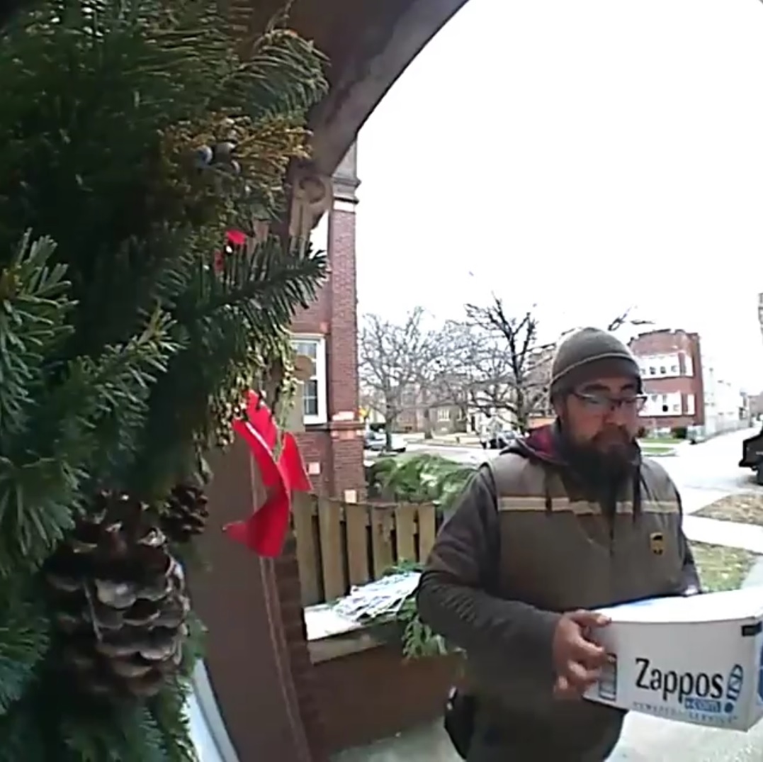 2018年12月13日大自然有時候給我們的驚喜,還是出人意料啊!在美國《UPS郵遞公司》,擔任送貨專員的「奧斯卡‧盧西亞諾」(Oscar Luciano),今天一如往常的在伊利諾州出勤,忙碌的東奔西跑,為家家戶戶送貨到府。正當他在客戶門前等待簽收時,一個可愛的小傢伙悄悄出現了,偷偷摸摸地不知正打算做什麼呢?