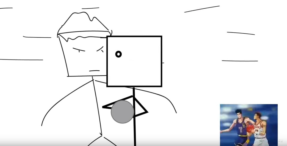 ▼全長1分41秒的片段,全部都是火柴人。表情十足的它們,模仿着湘北籃球隊的主角們,而MV影片的右下方,則有原創畫面做對比,否則鬼才知道哪個火柴人代表的是誰啦!XD