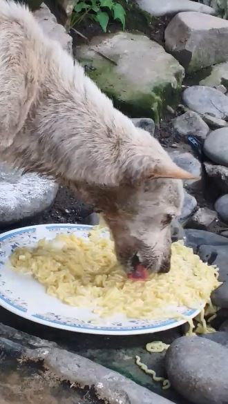 浪浪猛吃麵卻永遠吃不飽 網友淚崩:牠的喉嚨...QQ