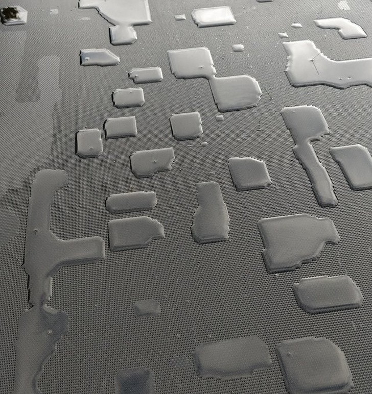 ▼放在戶外的彈翻床上,露珠形成了這樣的形狀。