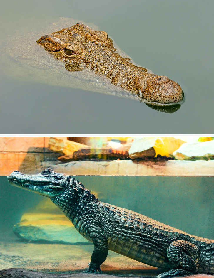 ▼鱷魚在水底下的模樣,其實牠們並不是浮在水底。