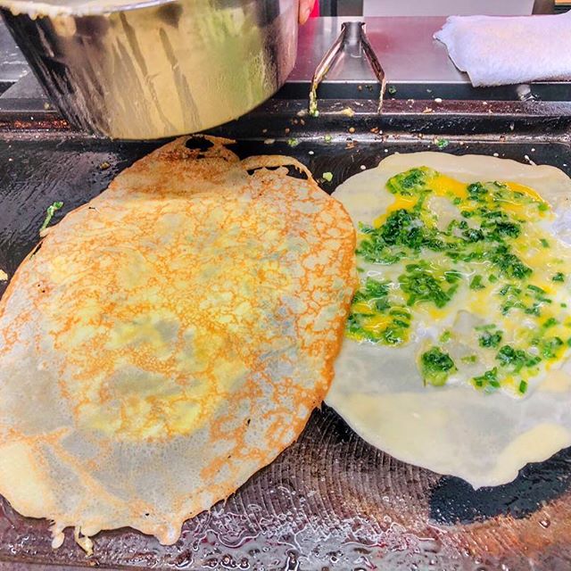 創立於1978年,位在福星路上的「明倫蛋餅」,是逢甲夜市超人氣的台灣傳統小吃。現點現做,所以任何時候都有人在排隊。下麵糊、煎至微焦、加蛋加葱花,還可以選擇添加獨門的甜辣醬、醬油、胡椒或是辣椒粉。加在熱呼呼、軟綿綿,香味四溢的美味蛋餅中,簡直好吃到讓人欲罷不能啊!