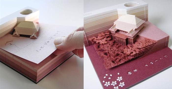 ▼在「TRIAD」公司的設計下,原本外觀普通的便條紙,撕着撕着、結果竟撕出了一座日本清水寺!這款被網友們封為「世界最美的Memo紙」,才正式販售沒幾天,就賣到整個網站和實體店面通通都斷貨。