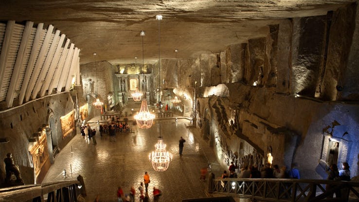 ▼波蘭,有327公尺深、超過287公里長的「維利奇卡鹽礦」(Wieliczka Salt Mine)。