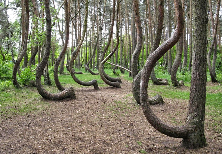 ▼波蘭,長著一片彎曲樹木的「邪惡森林」(Crooked Forest)。