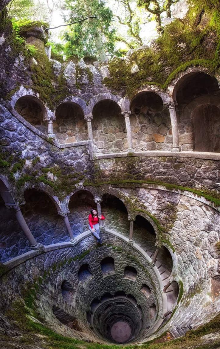 ▼葡萄牙,世界遺產雷加萊拉宮裡的「顛倒塔」(Inverted Tower)。