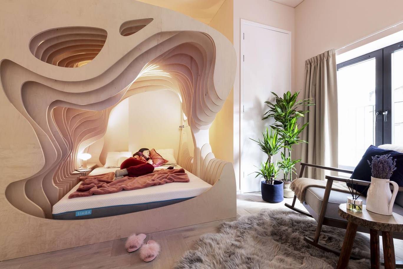 ▼「The Zed Rooms」內,燈光格外柔和,床也很獨特,採用了粉嫩的桃色。躺在床上時,有一種回到母體的感覺。房間裡有幫助人放鬆心情的氣味,整體設計溫暖簡潔,非常療癒。